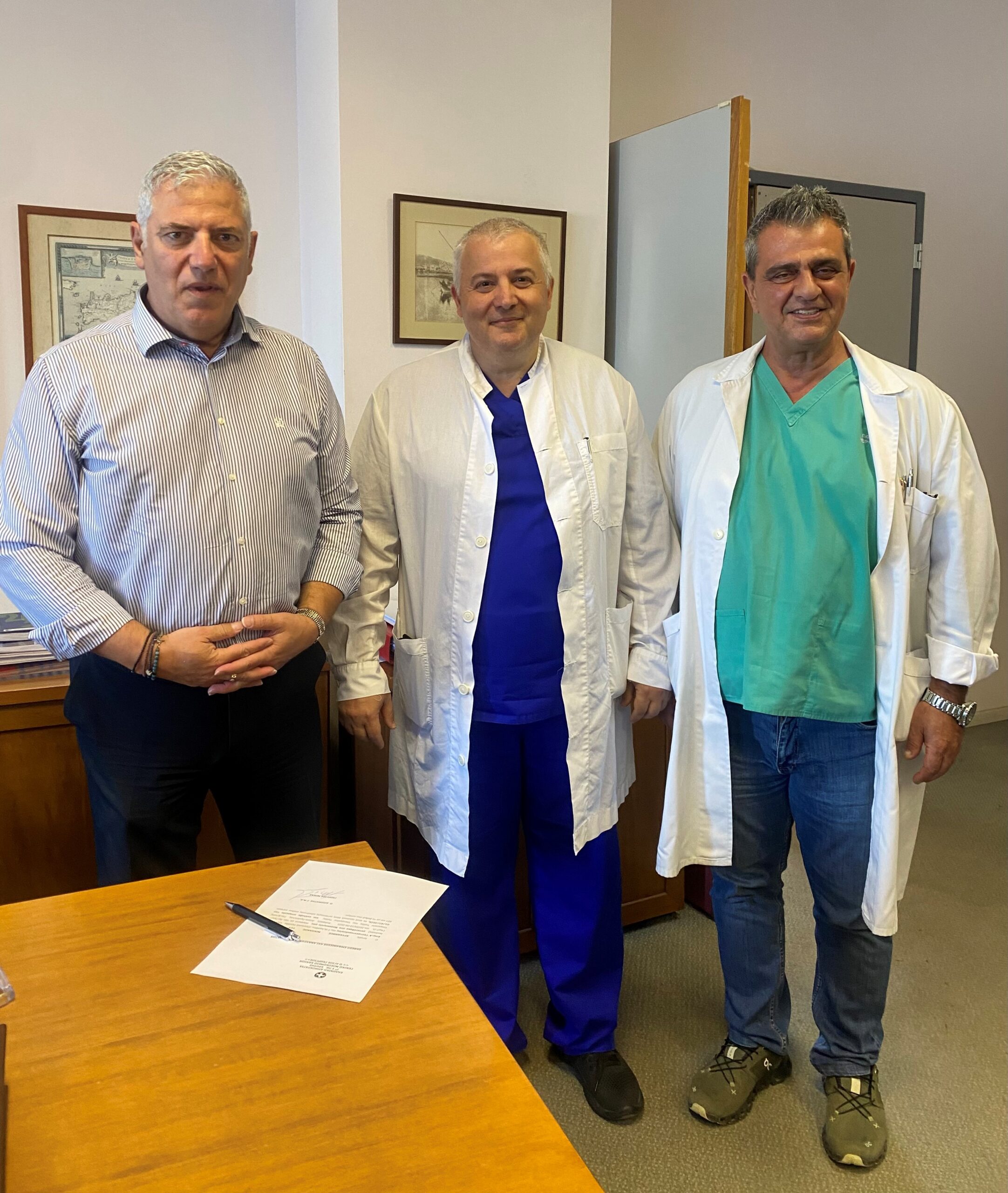 Το Γενικό Νοσοκομείο Χανίων «Ο Άγιος Γεώργιος» ενισχύεται σημαντικά με την τοποθέτηση νέου μόνιμου γαστρεντερολόγου. Ο κ. Νικόλαος Χρύσανθος, Επιμελητής Α’, ανέλαβε πρόσφατα καθήκοντα στο Γαστρεντερολογικό Τμήμα, παρουσία του Διοικητή του Νοσοκομείου κ. Μπέα και του Διευθυντή Ιατρικής Υπηρεσίας κ. Καζούλη .